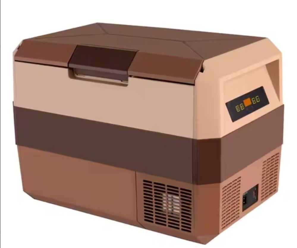 تبريد وتجميد سريع بقدرة عالية وتصميم أنيق باللون البني للرحلات والسيارات